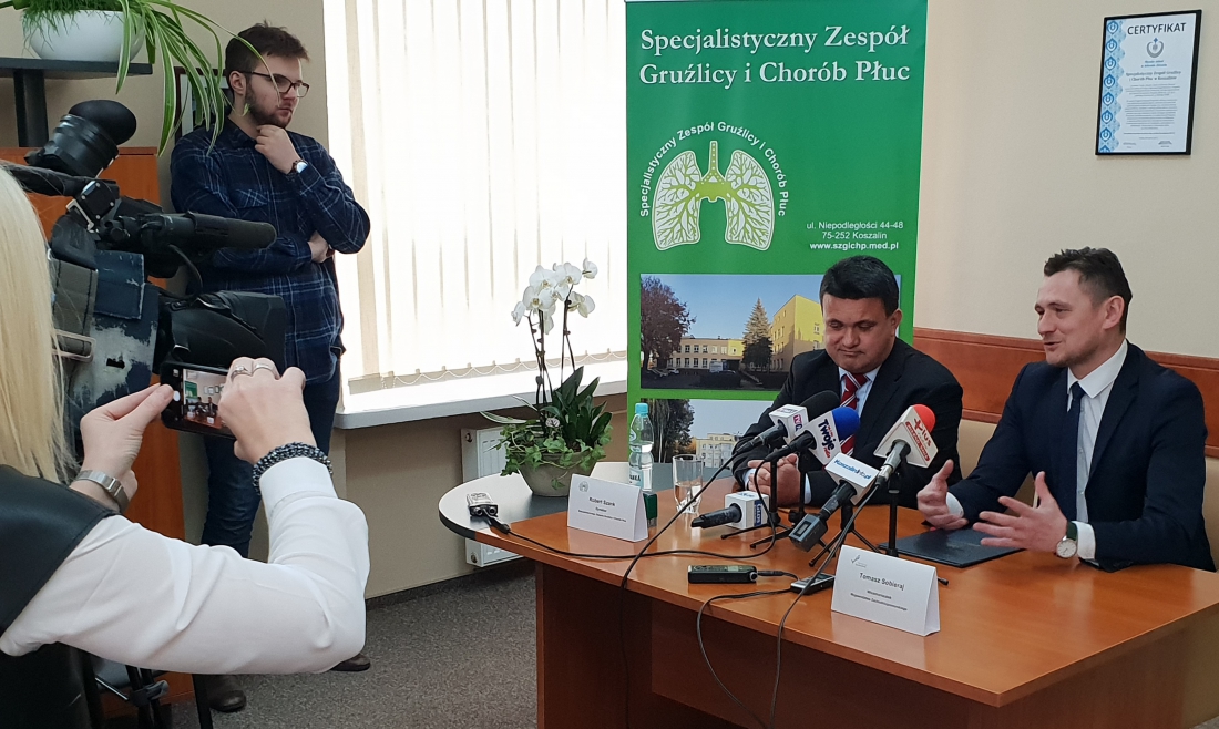 Specjalistyczny Zespół Gruźlicy i Chorób Płuc w Koszalinie podnosi standardy leczenia. Za około 800 tys. zł placówka nabędzie cyfrowy aparat RTG. Połowę kosztów zakupu pokryje dotacja Urzędu Marszałkowskiego. W piątek, 1 marca 2019 roku umowę wsparcia podpisali w Koszalinie, wicemarszałek województwa Tomasz Sobieraj i dyrektor placówki Robert Szrank.