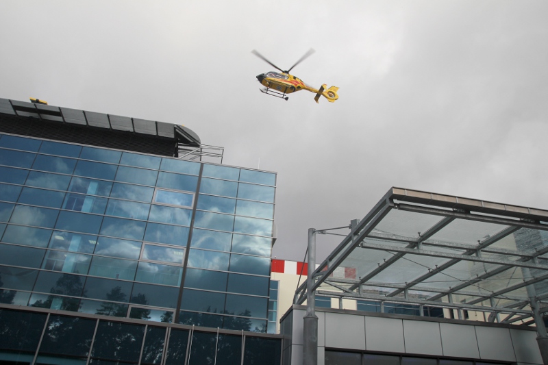 Wszyscy uczestnicy uroczystości mieli okazję obserwować pierwszy, próbny start helikoptera Lotniczego Pogotowia Ratunkowego i potwierdzić, że płyta lądowiska przeszła pionierski egzamin.